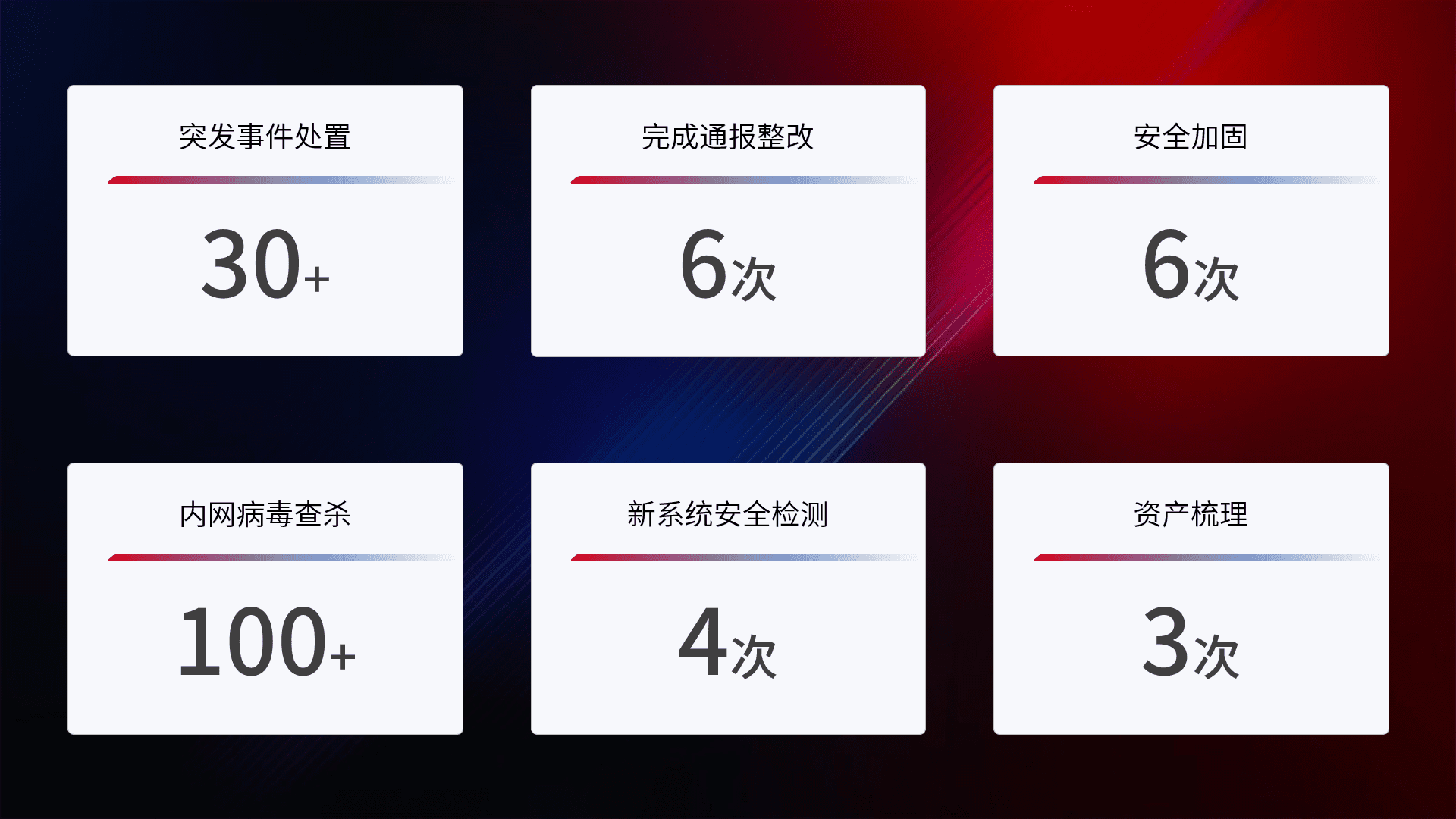 网络安全加固与风险管理:通过技术加固手段,,,如加强区域隔离,,,,缩减攻击内网横向移动的范围;优化现有网络安全管理制度,,,,降低网络威胁暴露面,,,减少被黑客攻击的可能性。。